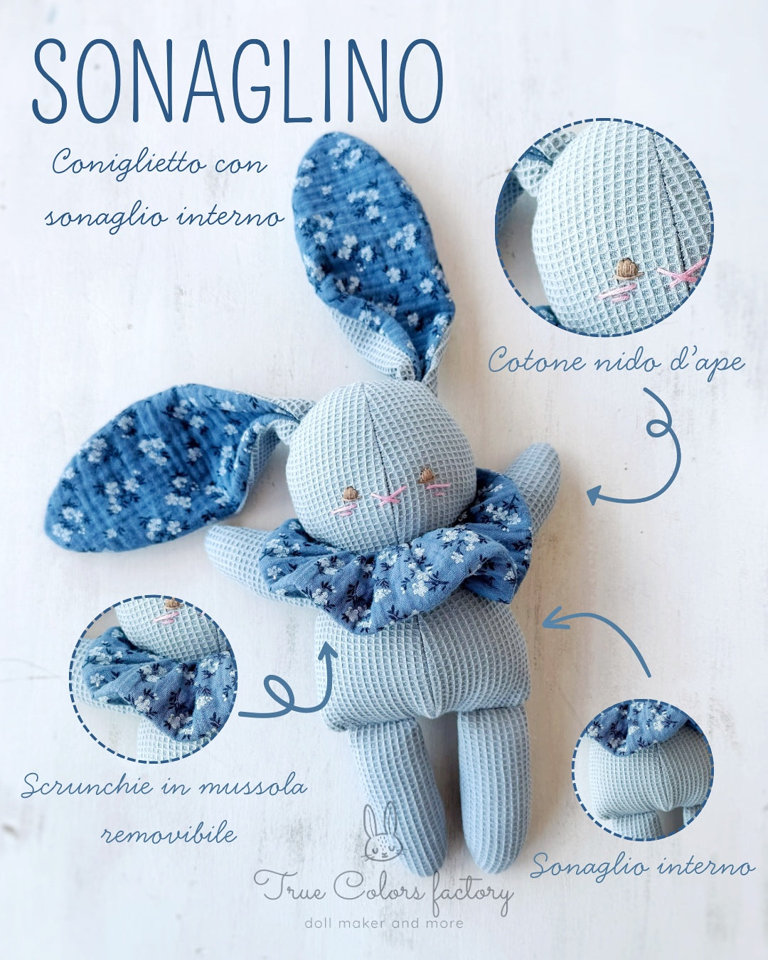 - Pupazzo con SONAGLIO interno per stimolare lo sviluppo sensoriale (misure 24 cm x 16 cm)